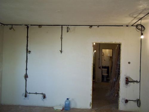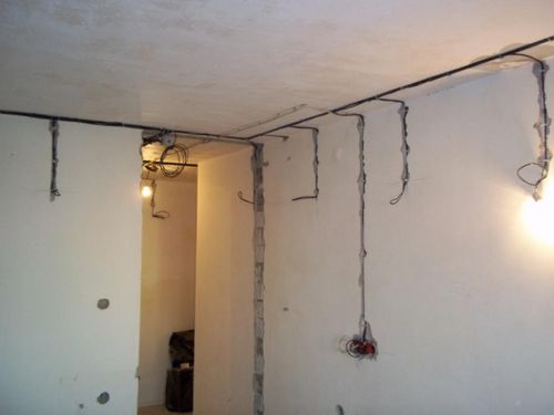 Instalace elektrického vedení na stropě: jak vést na podlaze, lustr v domě, 3 kabely v bytě, provádíme opravy