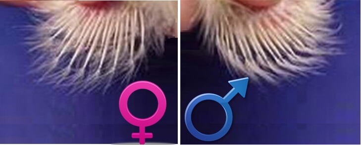 Chcete-li spolehlivě určit pohlaví kuřátka, musíte vytvořit stresovou situaci, například vyděsit mláďata. Samice se k sobě v takových případech obvykle choulí nebo se schovávají na bidýlku. Ale odvážní samci rychle překonávají svůj strach a zaujímají obranný postoj, čímž ukazují, že jsou připraveni odrazit útok.