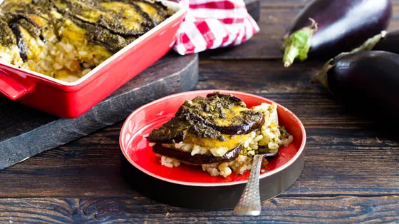 Pokud z nějakého důvodu nejíte maso, připravte si vegetariánskou musaku podle našeho originálního receptu. Mimochodem, i přes absenci mletého masa v pokrmu se musaka jeví jako velmi sytá. A samozřejmě neuvěřitelně chutná: myslíme si, že taková vegetariánská musaka osloví i ty nejzapřisáhlejší masožravce. Připravuje se poměrně rychle, pouze brambory a rýži je třeba předem uvařit. A ještě jedna malá poznámka: pokud kromě masa nejíte ani mléčné výrobky, pečlivě si přečtěte složení pesta (nemělo by obsahovat sýr) nebo si omáčku připravte sami – z bazalky, olivového oleje, česneku a piniových oříšků.