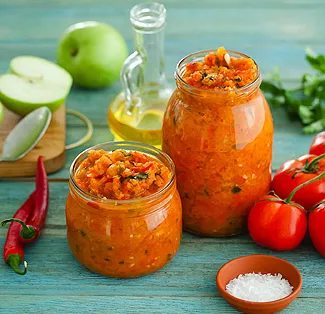 Taková zelenina se v Abcházii obvykle podává na jakémkoli stole – spolu s mamalygou, masem nebo kuřetem a sýrem. Ale i bez mamalygy se skvěle hodí k šašlikům.